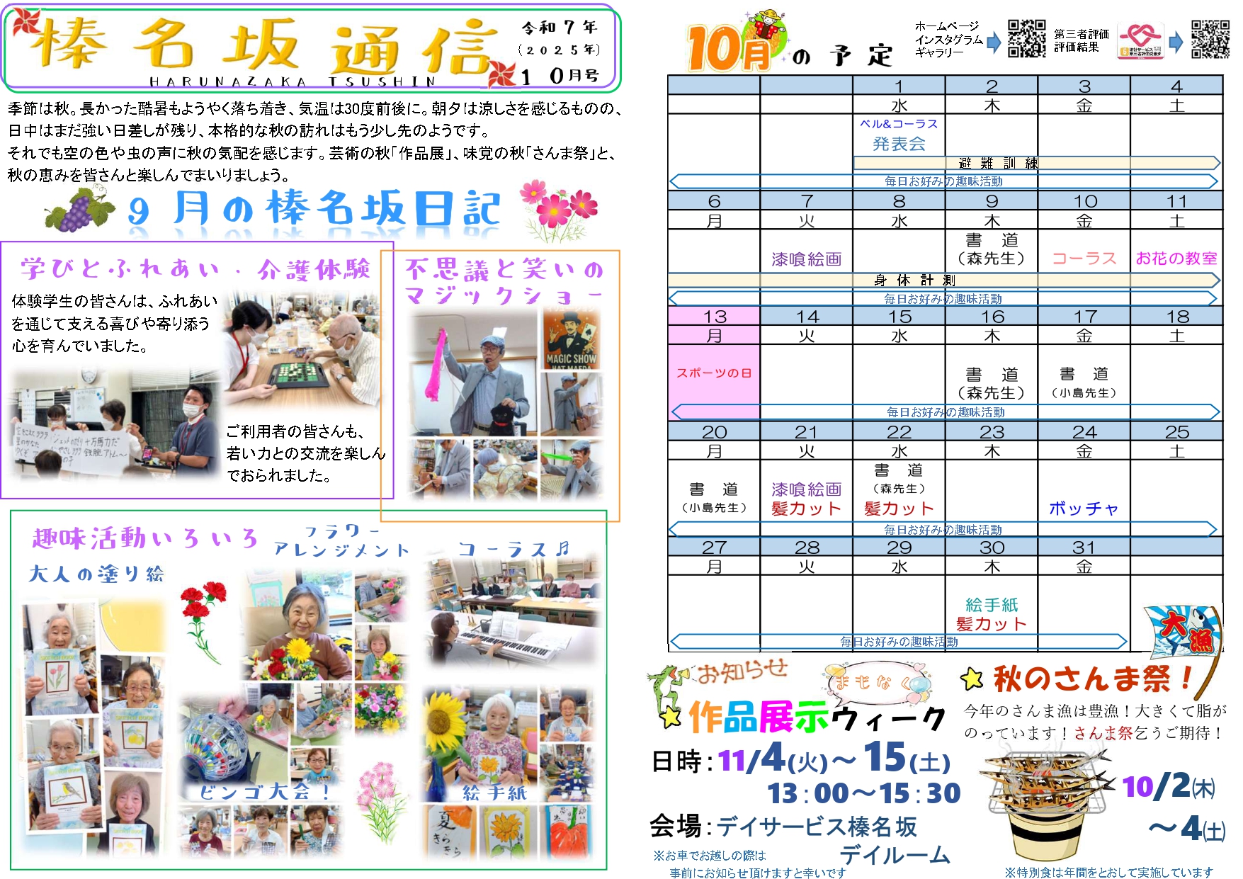 今年も、榛名坂デイサービスでは「秋の作品展」を開催いたします。