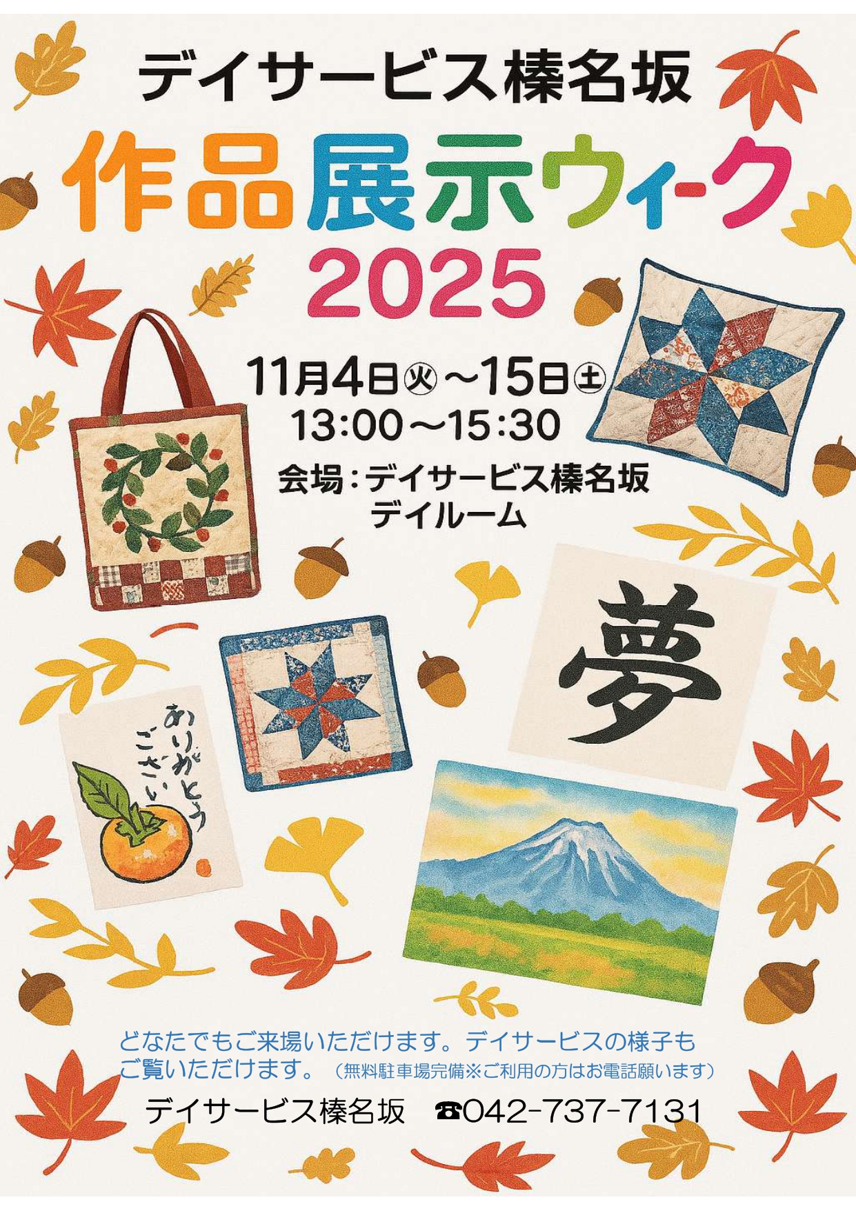今年も、榛名坂デイサービスでは「秋の作品展」を開催いたします。